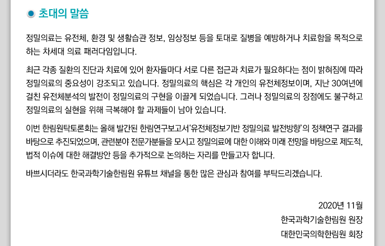 [세미나] 제 101회 한림원탁토론회