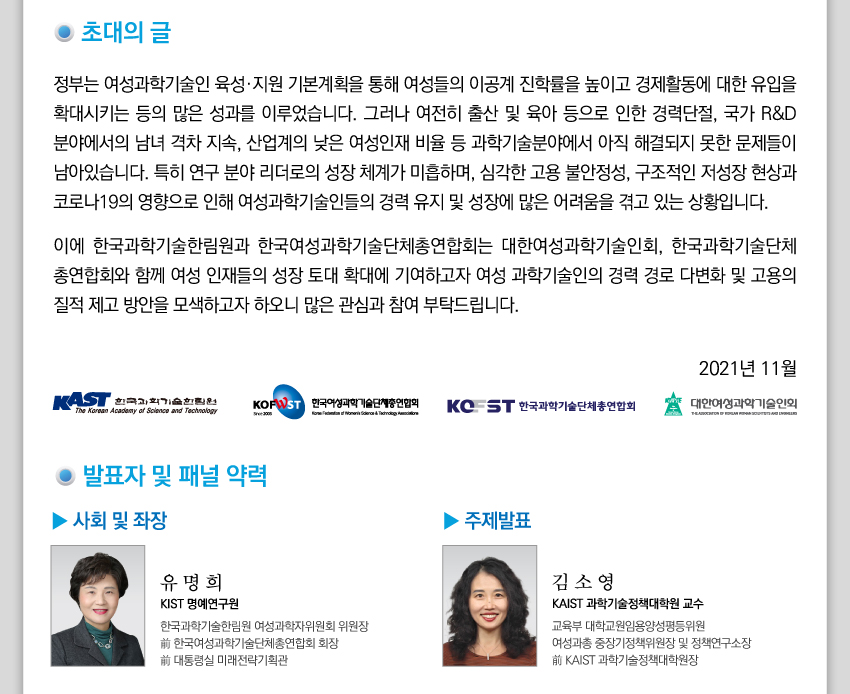 제목 [토론회] [온라인 공동토론회] 여성과학기술인 정책, 차기 정부에 묻다