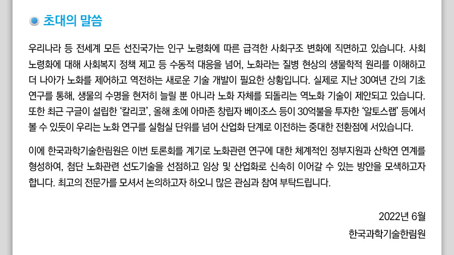 [세미나] 한국과학기술한림원-대한민국의학한림원 공동포럼