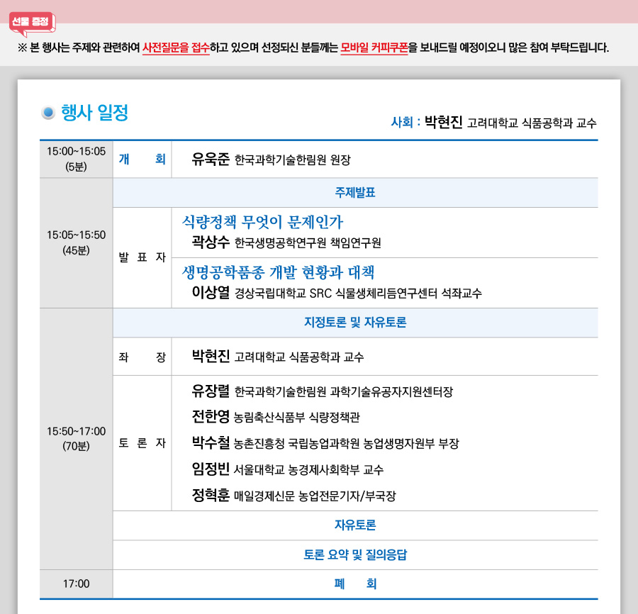 [세미나] 제112회 한림원탁토론회(주제: 유전자교정 기술도입 및 활용을 위한 법․제도 개선방향, 2017. 8. 3(목), 15:00)