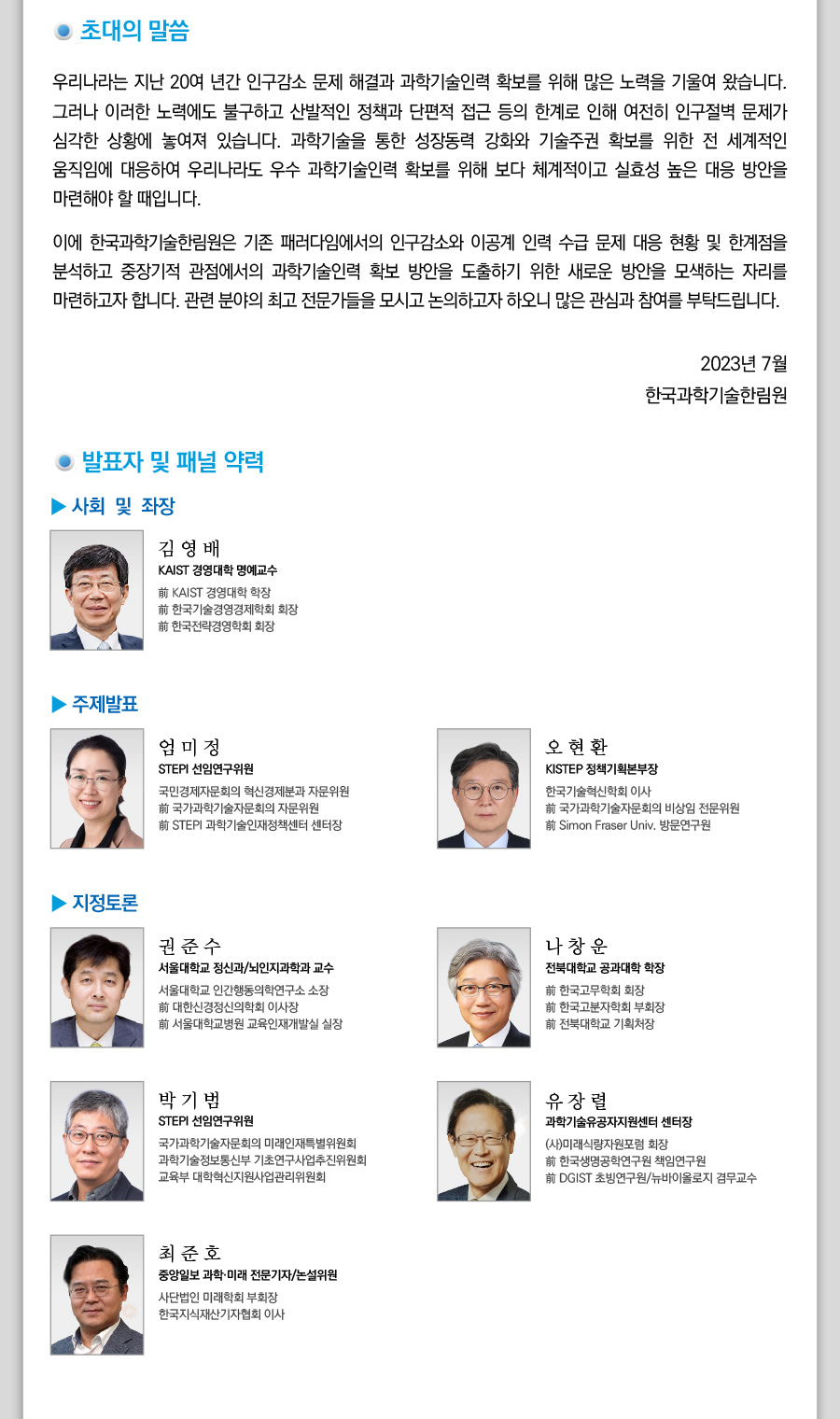 [세미나] [국회-과총-한림원 공동 긴급포럼] 제1차 첨단과학기술 이공계 인재 양성 정책