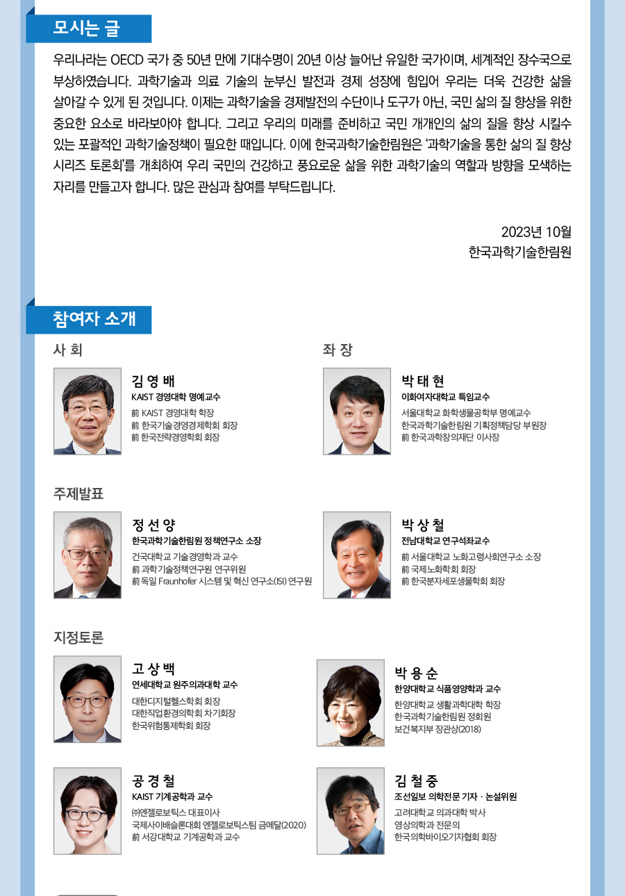 [세미나] 한국과학기술한림원-대한민국의학한림원 공동포럼