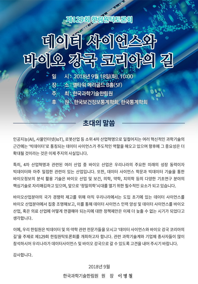 [세미나] 제116회 한림원탁토론회(4차 산업혁명을 다시 생각한다.(2017. 8. 22(화), 14:30)