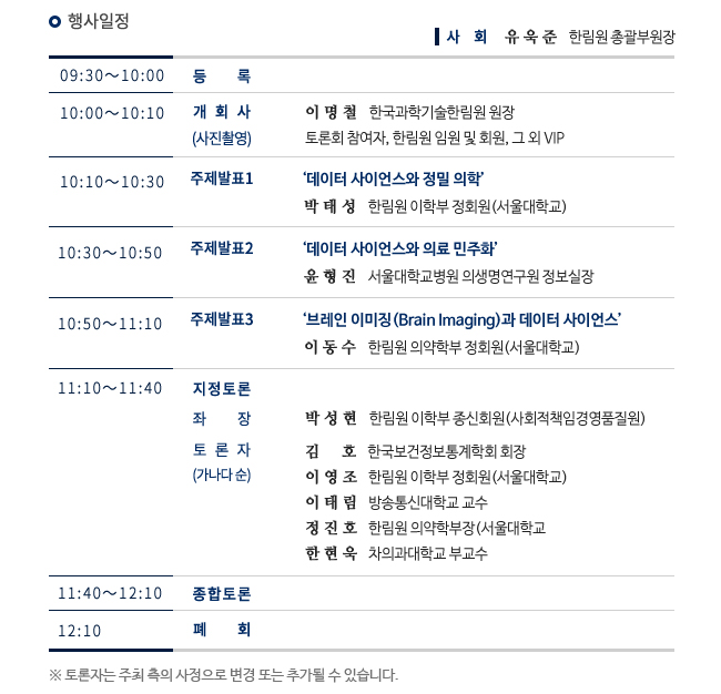 [세미나] 한국과학기술한림원-대한민국의학한림원 공동포럼