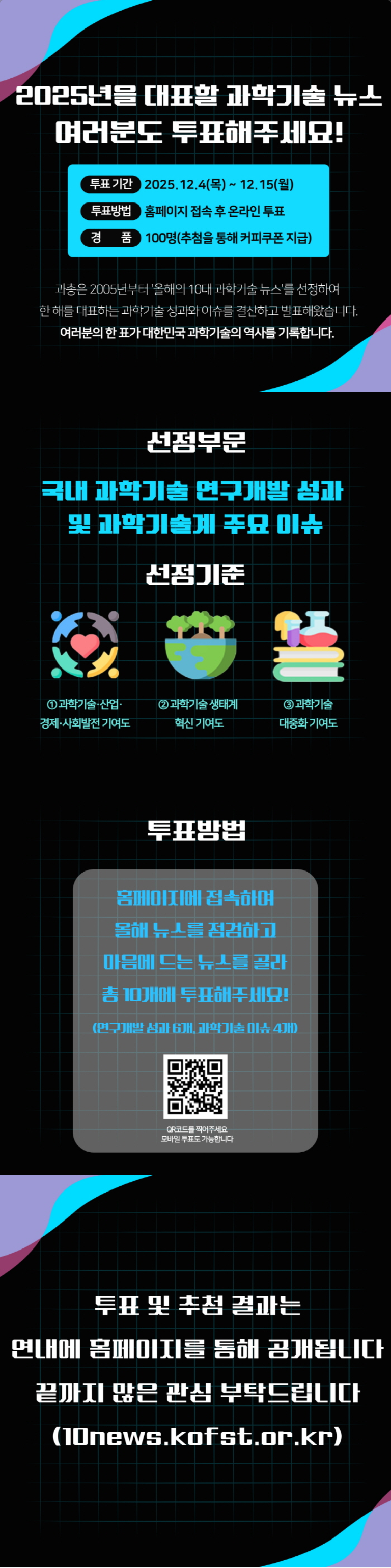 - [과총] '올해의 10대 과학기술 뉴스' 대국민 투표 안내 2025-12-05 ~ 2025-12-15