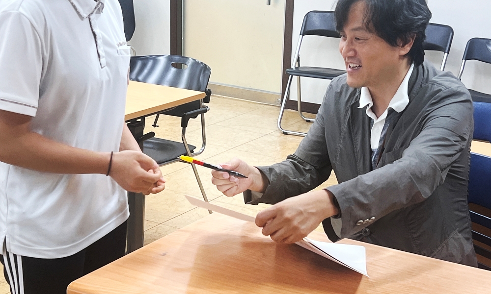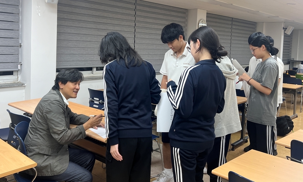 수지고등학교에서 강연 후 학생들과 소통하는 선웅 고려대학교 교수
