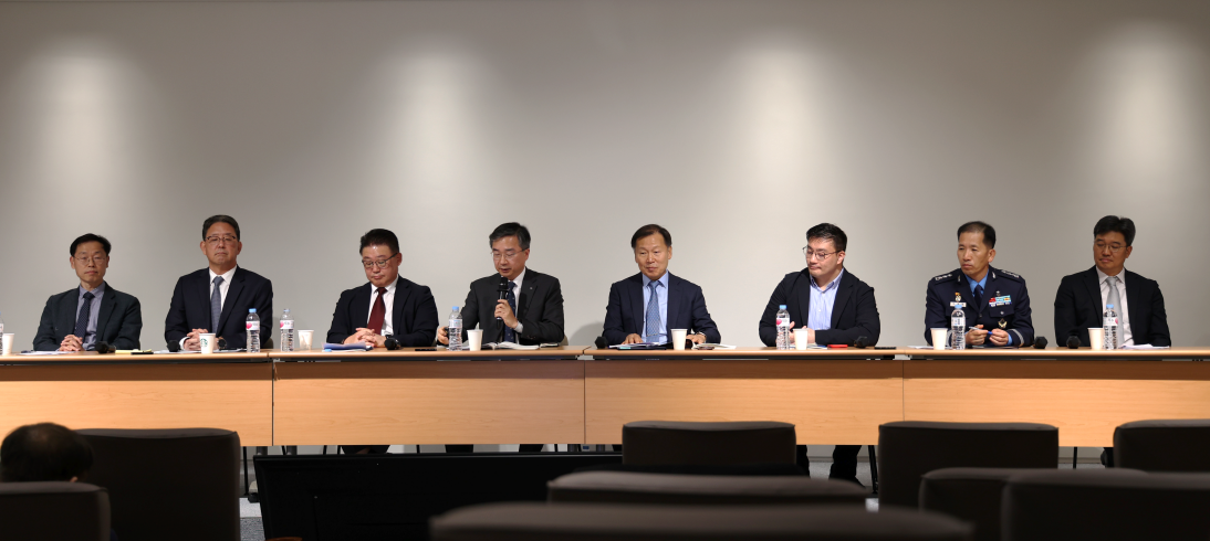 지정 및 자유토론에서 참석 전문가들이 논의를 하고 있다. (왼쪽부터) 김유일 국방과학연구소 항공기술연구원 3부장, 김원욱 한화에어로스페이스 첨단엔진사업단 단장, 이상언 두산에너빌리티 파워서비스 GT Center 센터장, 김지홍 한국항공우주산업 미래융합기술원 원장, 조형희 연세대학교 기계공학부 교수(좌장), 심현석 방위사업청 첨단항공엔진개발 파트리더, 이홍철 공군 항공기술연구소 소장, 김재환 한국항공우주연구원 항공추진연구부 부장