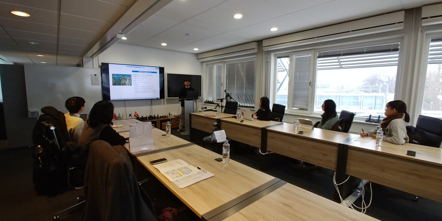 참가단이 한-북유럽 과학기술협력센터(KNTEC)에서 설명을 듣고 있다.
