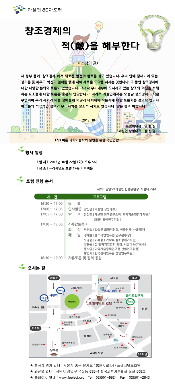 PRINT [과실연] '창조경제의 적을 해부한다' 포럼 개최 안내 이름 | 관리자 Date | 2013-10-18 Hit | 11462 목록 작성자 연락처 이전글 2013년도 한국과학기술한림원 사무처 직원채용 1차 서류전형 합격자 발표 다음글 [여과총]2013 Asia Woman Eco Science Forum (AWESF 2013)