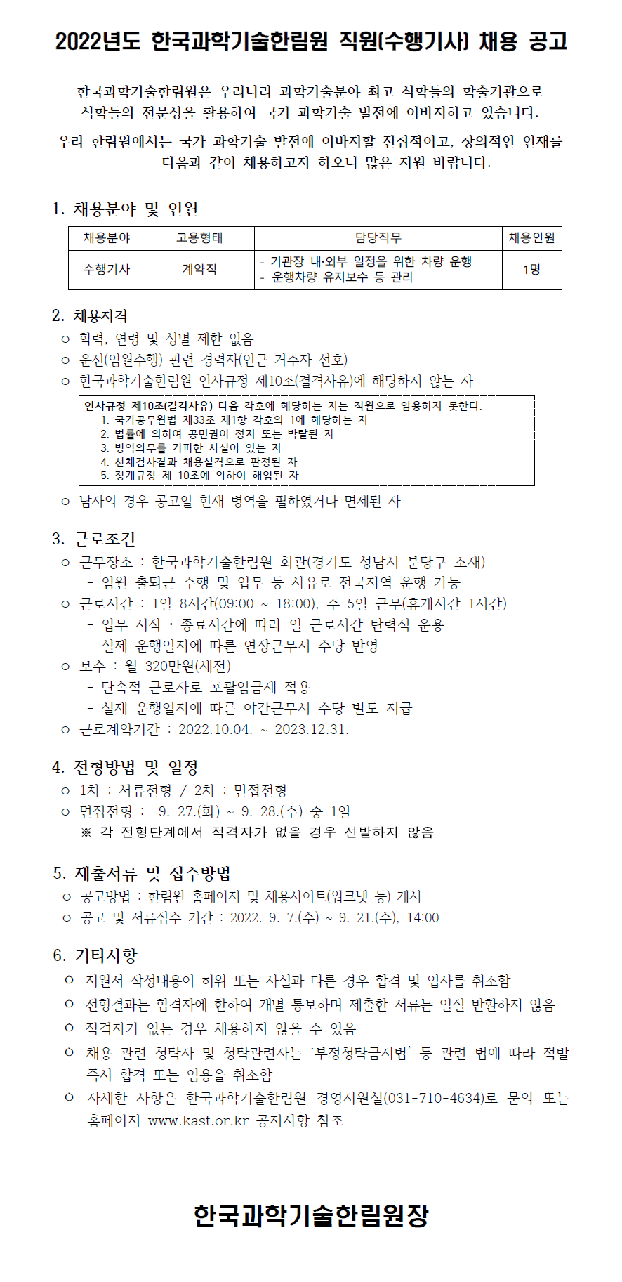 PRINT [채용공고] 2022년도 한국과학기술한림원 직원(수행기사) 채용 공고 이름 | 관리자 Date | 2022-09-07 Hit | 4266 목록 작성자경영지원실 연락처031-710-4634 이전글 2022년도 직원 채용(6차) 최종합격자 안내 다음글 [입찰공고] 한국과학기술한림원 회관 시설종합관리용역