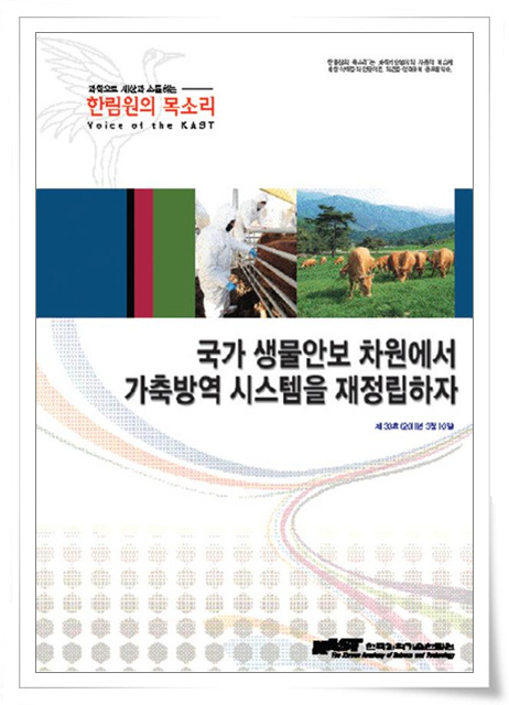 우리 한림원은 지난 3월 10일 ‘국가 생물안보 차원에서 가축방역 시스템을 재정립하자’를 주제로 한 ‘한림원의 목소리’ 제 30호를 공표했다.