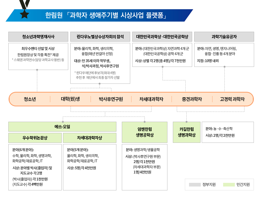 각 단계(생애주기)별 맞춤형 시상을 통해, 청소년기부터 고경력 과학자에 이르기까지 체계적 성장 지원