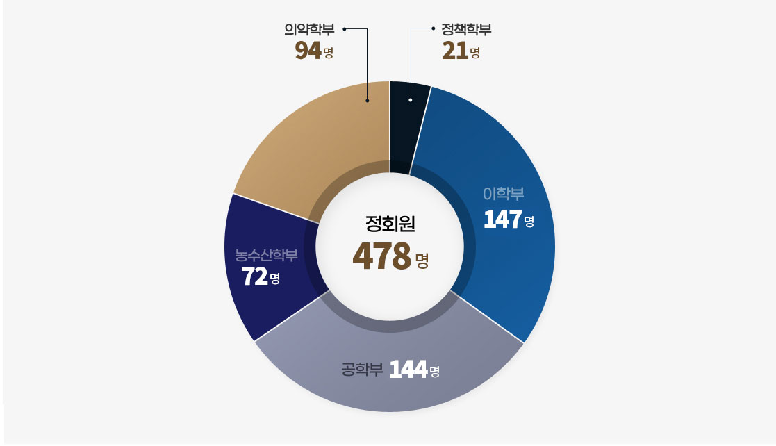 정책학, 이학, 공학, 농수산학, 의약학 등 각 학문분야를 대표하는 1,072명의 석학들이 한림원회원으로 선출되어 자신의 전문분야는 물론 더 나아가 국가발전을 위한 과학기술 진흥에 이바지하고 있습니다.