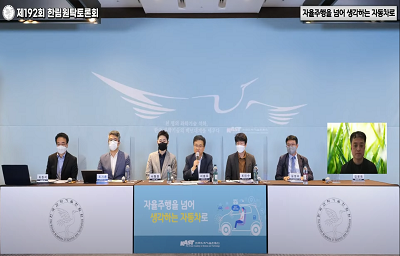 한국과학기술한림원은 10월 15일 (금) , ‘자율주행을 넘어 생각하는 자동차로’를 주제로 제192회 한림원탁토론회를 온라인으로 개최했다. [주제발표] - 조민수 POSTECH 교수, ‘자율주행 자동차 기술의 현재와 미래’ - 서창호 KAIST 교수, ‘자율주행, 그 이상의 구현을 위한 사회적 윤리적 이슈’ - 조기춘 건국대학교 교수, ‘자율주행 자동차로 인한 사회ㆍ경제적 변화와 대응방안’ [지정토론] - 좌장 : 서승우 서울대학교 전기ㆍ정보공학부 교수- 토론자 : 김정희 현대자...