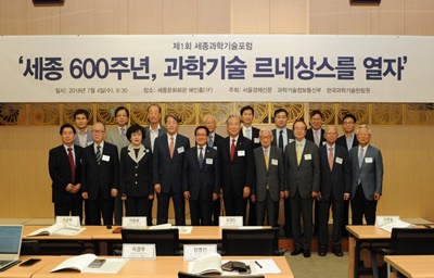 우리 한림원과 과학기술정보통신부, 서울경제신문은 지난 4일 세종문화회관 예인홀에서 ‘세종 600년, 과학기술 르네상스를 열자’를 주제로 ‘제1회 세종과학기술포럼’을 공동 개최했다. 이번 행사는 세종대왕 즉위 600주년을 맞이하면서 세종대왕의 뛰어난 과학기술 업적과 리더십, 그리고 우리나라가 강국으로 성장할 수 있었던 요인을 재조명해 4차 산업혁명시대에 과학기술이 나아갈 방향에 대해 논의하기 위해 마련됐다.[개회사 및 축사: (왼쪽부터) 이종환 부회장, 유영민 장관, 이명철 원장]서울경제신문 이종환 대표이사 부회장...