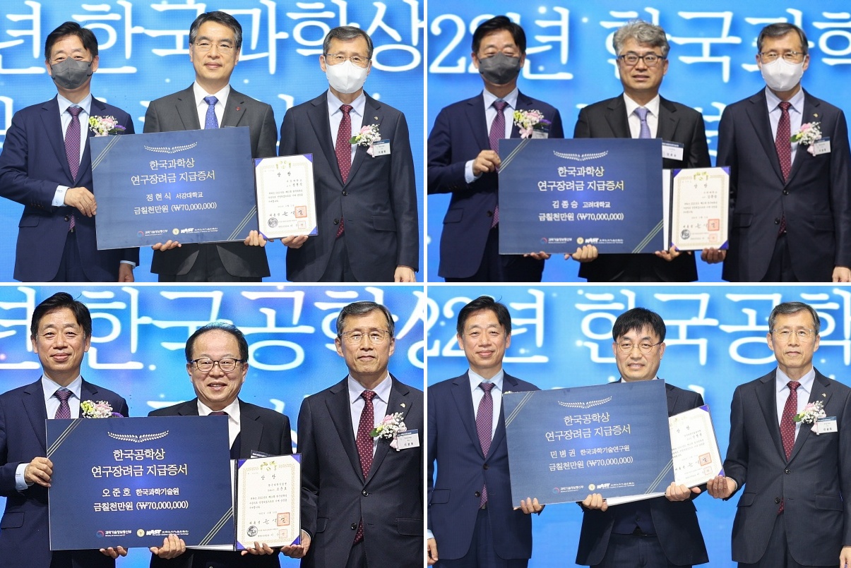 시상식에서는 자연과학 및 공학 분야에서 세계 정상 수준의 연구성과를 창출한 공로자에게 수여하는 한국과학상 및 한국공학상 수상자인 정현식 서강대학교 물리학과 교수, 김종승 고려대학교 화학과 교수, 오준호 KAIST 기계공학과 명예교수, 민병권 KIST 청정신기술연구본부 본부장 등 4인에게 대통령 상장과 연구장려금 각 7천만원이 수여됐다.