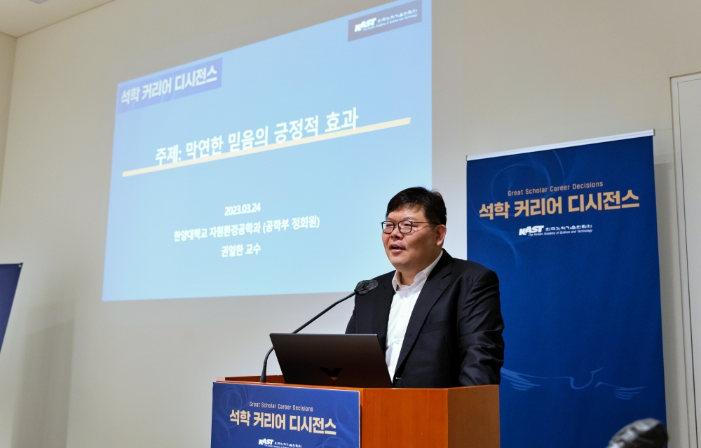 한국과학기술한림원(유욱준 원장, 이하 한림원)은 3월 24일, 한림원회관 1층 성영철홀에서 2023년 공학부 신입 정회원인 권일한 한양대학교 교수와 고승환 서울대학교 교수를 연사로 초청하여 '제14회 석학 커리어 디시전스'를 개최했다. 현장에는 유욱준 한림원장, 이창희 총괄부원장, 한림원 회원 및 각 연사의 제자 등 약 40여명이 참석했다.