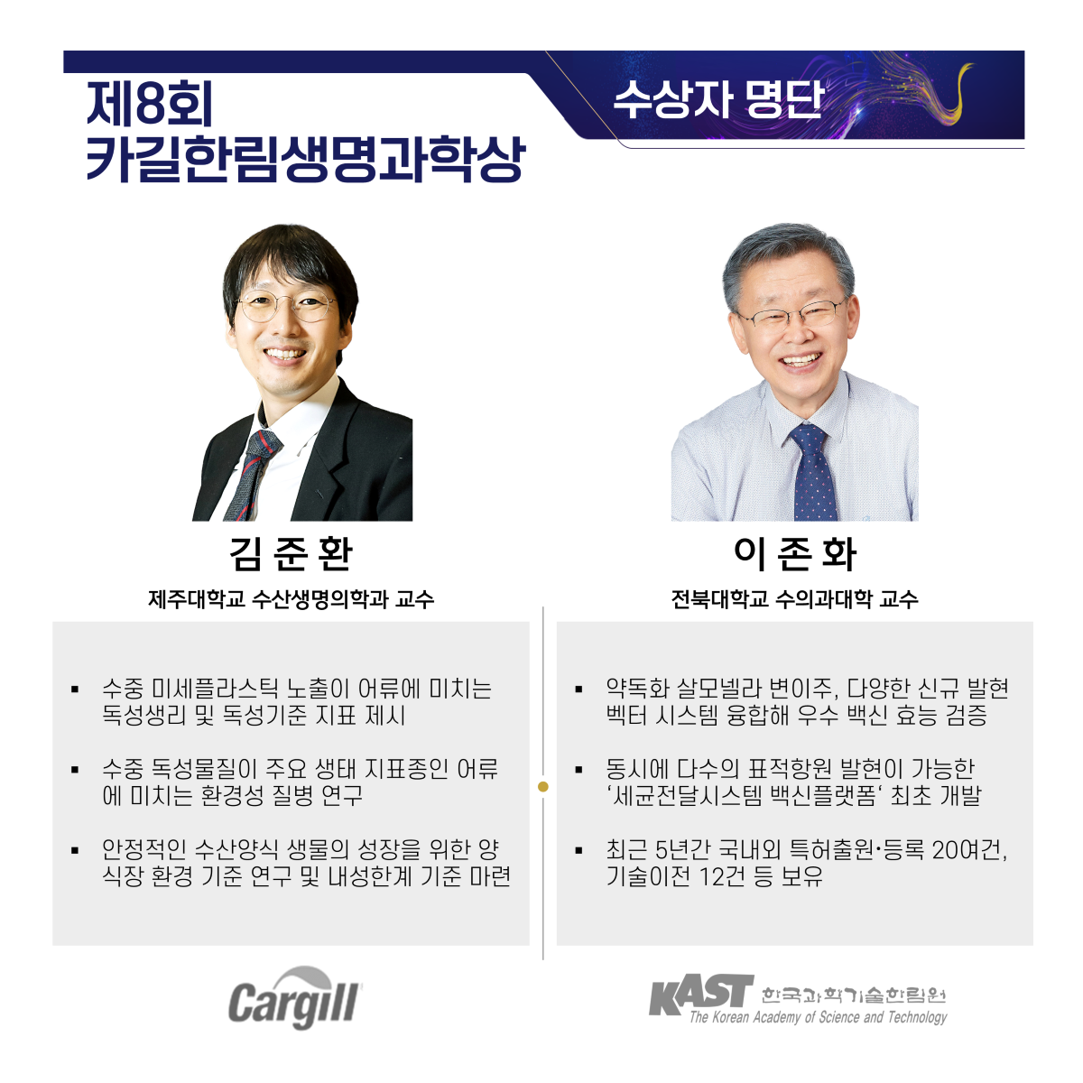 김준환 · 이존화 교수 제8회 카길한림생명과학상 수상