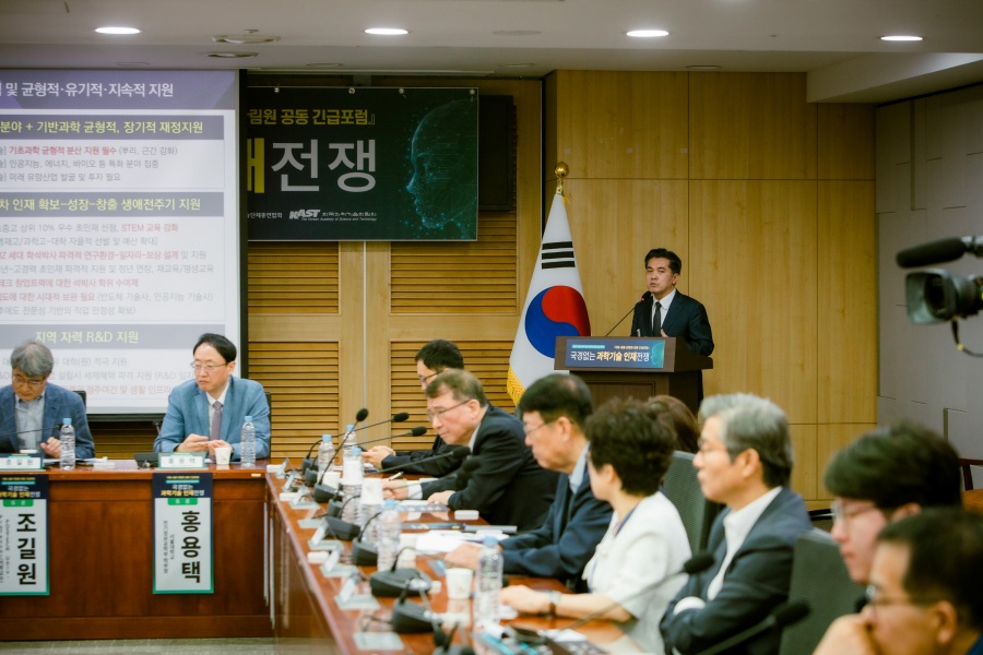 한국과학기술한림원(원장 정진호, 이하 한림원)이 국회 과학기술정보방송통신위원회 소속 김현 의원, 최형두 의원, 조인철 의원, 최수진 의원, 황정아 의원 등 여야 국회의원과 한국과학기술단체총연합회(회장 이태식, 이하 과총)와 함께 6월 19일(목) 국회의원회관에서 '제2차 첨단과학기술 이공계 인재 양성 정책 포럼'을 공동 개최했다.