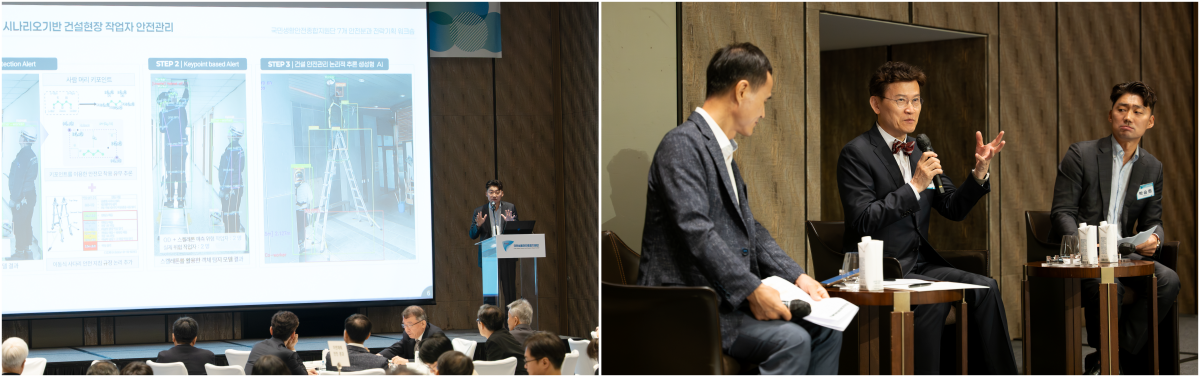 먼저 과학기술과 안전 분야의 접점에 대한 주제 발표를 토대로 대담을 가졌다. 첫번째로 김명주 AI안전연구소장이 AI 기술의 안전성 확보와 국민 생활안전 분야에서의 활용 가능성을 발표했다. 두번째로 박승희 성균관대학교 건설환경학부 교수가 건설 및 환경 분야에서의 AI 적용 사례와 기술적 과제를 소개했다. 참석자들은 발표 내용을 토대로 기술의 사회적 파급력과 안전성 확보 방안에 대한 대담에서 활발한 의견을 주고받았다.