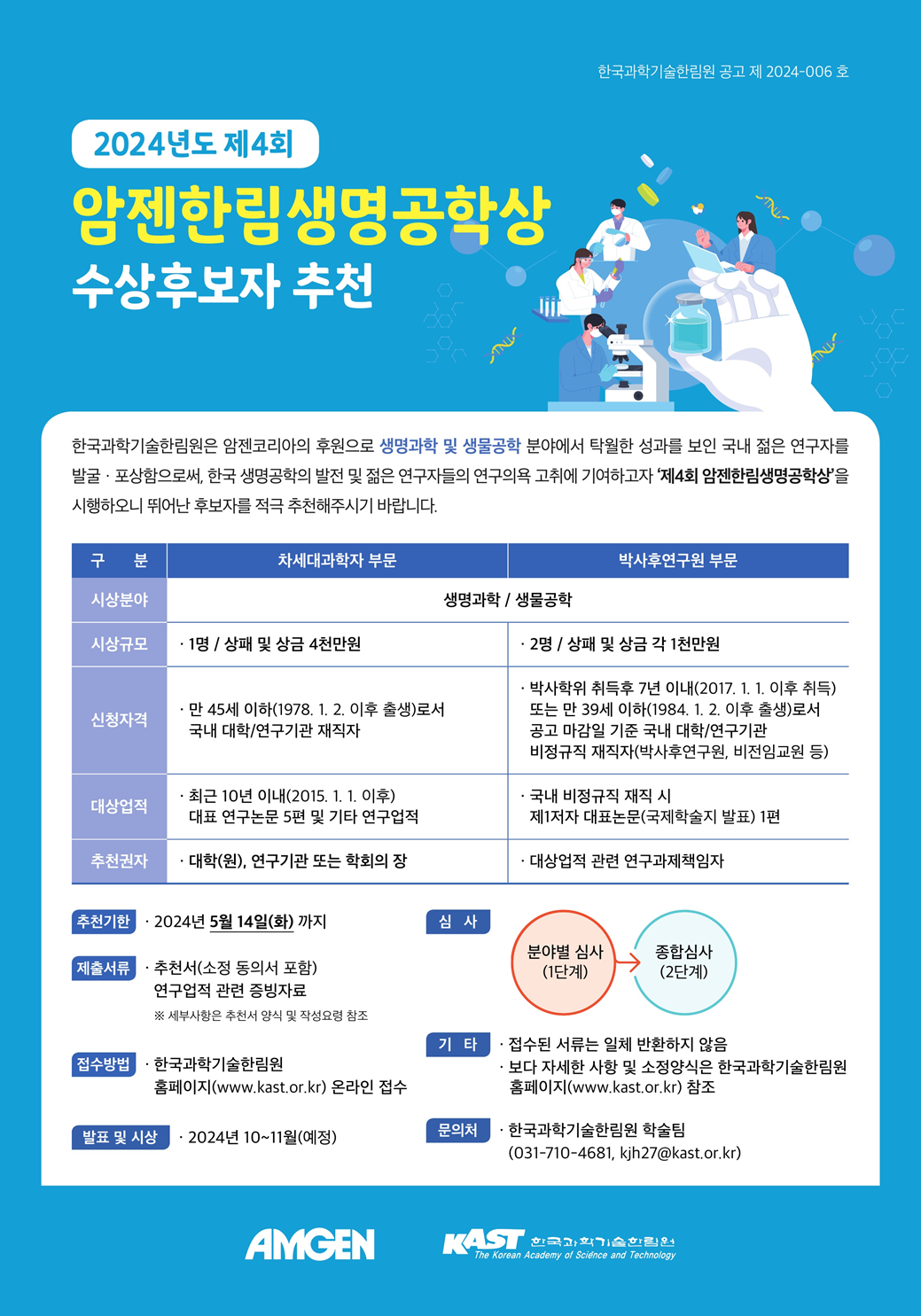 2024년도 제4회 암젠한림생명공학상 수상후보자 추천 공고