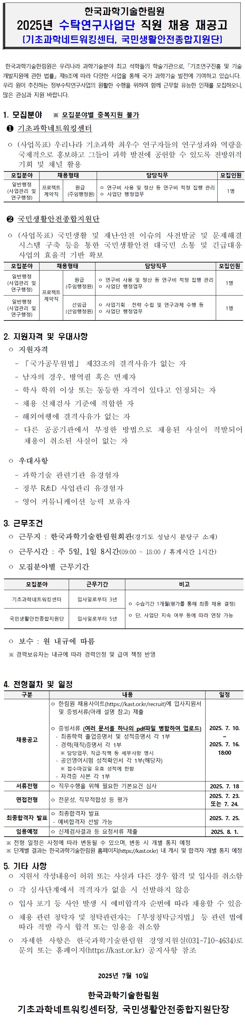 [채용] 수탁연구사업단 직원 채용 재공고(기초과학네트워킹센터, 국민생활안전종합지원단)