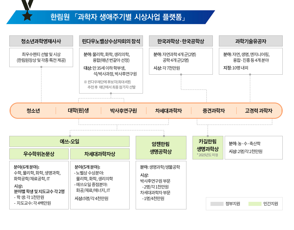 각 단계(생애주기)별 맞춤형 시상을 통해, 청소년기부터 고경력 과학자에 이르기까지 체계적 성장 지원