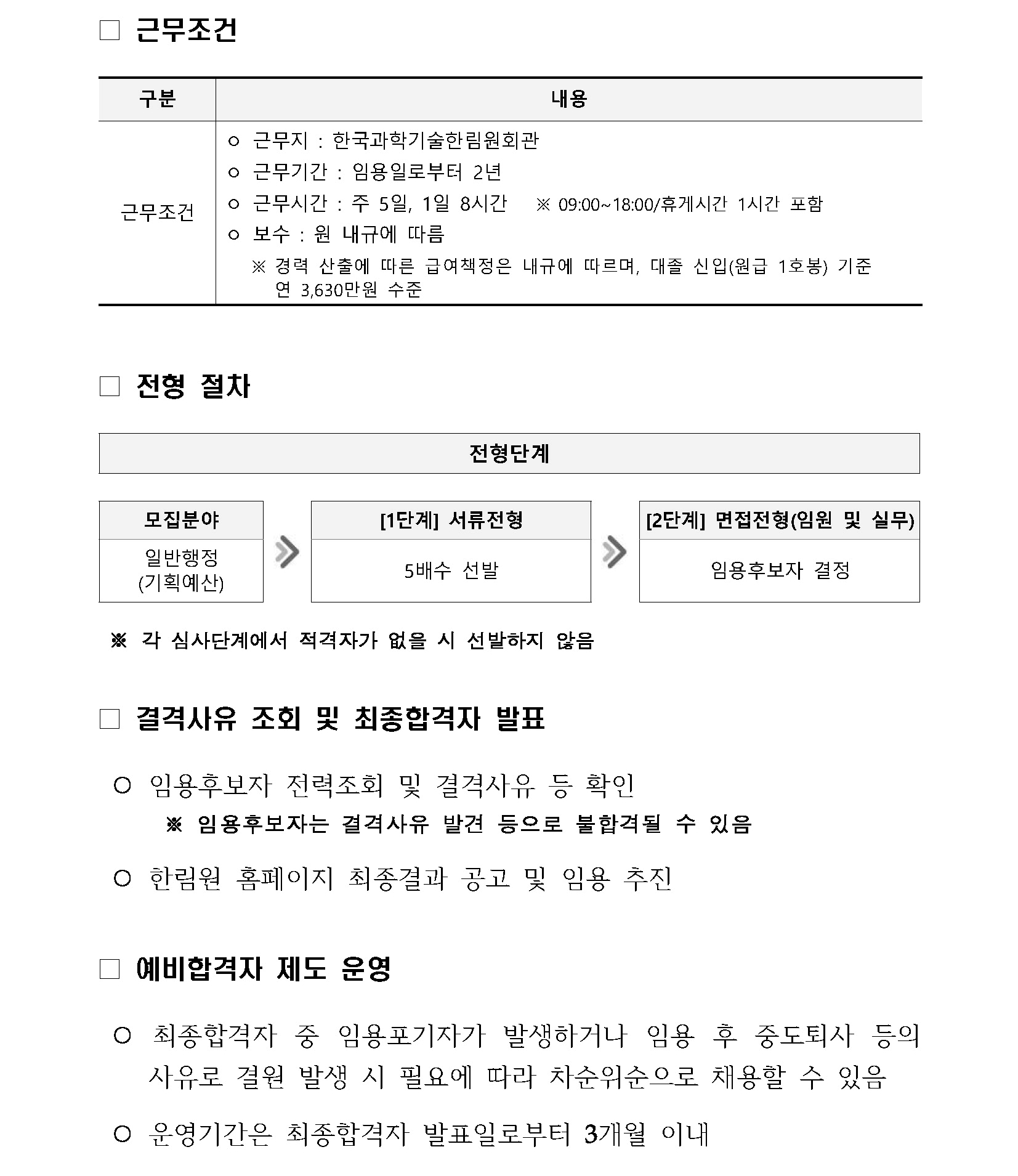 한국과학기술한림원 2025년 제3차 직원 공개채용 공고(기획예산) 이름 | 관리자 Date | 2025-11-10 Hit | 463 채용공고문_2025년 제3차 직원 공개채용 공고(기획예산).hwpx 목록 이전글 수탁연구사업단(국민생활안전종합지원단) 직원 채용 공고 다음글